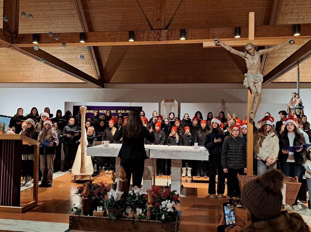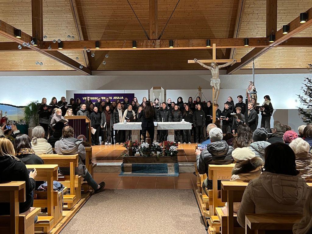 Am 17. und 18. Dezember fanden die beiden Adventkonzerte der Silberstimmen in der Pfarrkirche Ötztal-Bahnhof und in der Pfarrkirche St. Barbara in Schwaz statt. Gemeinsam mit dem Gesangsstudio DO-RE-MI, dem Unterstufenchor United Voices und den Vocalpeople wurden zwei stimmungsvolle Konzertabende gestaltet, wobei das zweite Konzert von Punsch, Keksen und Waffeln des Elternvereins und der Schüler:innenvertretung abgerundet wurde. Herzlichen Dank an den Absolvent:innenverein des RG Schwaz für die Verköstigung aller Sänger:innen.
