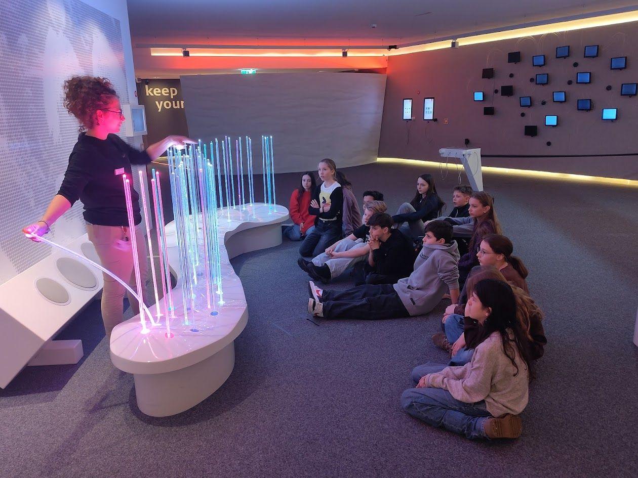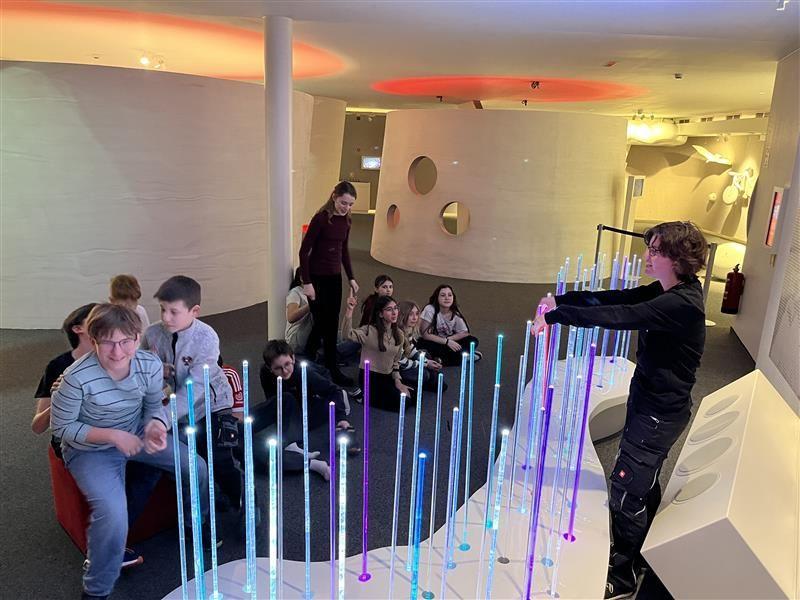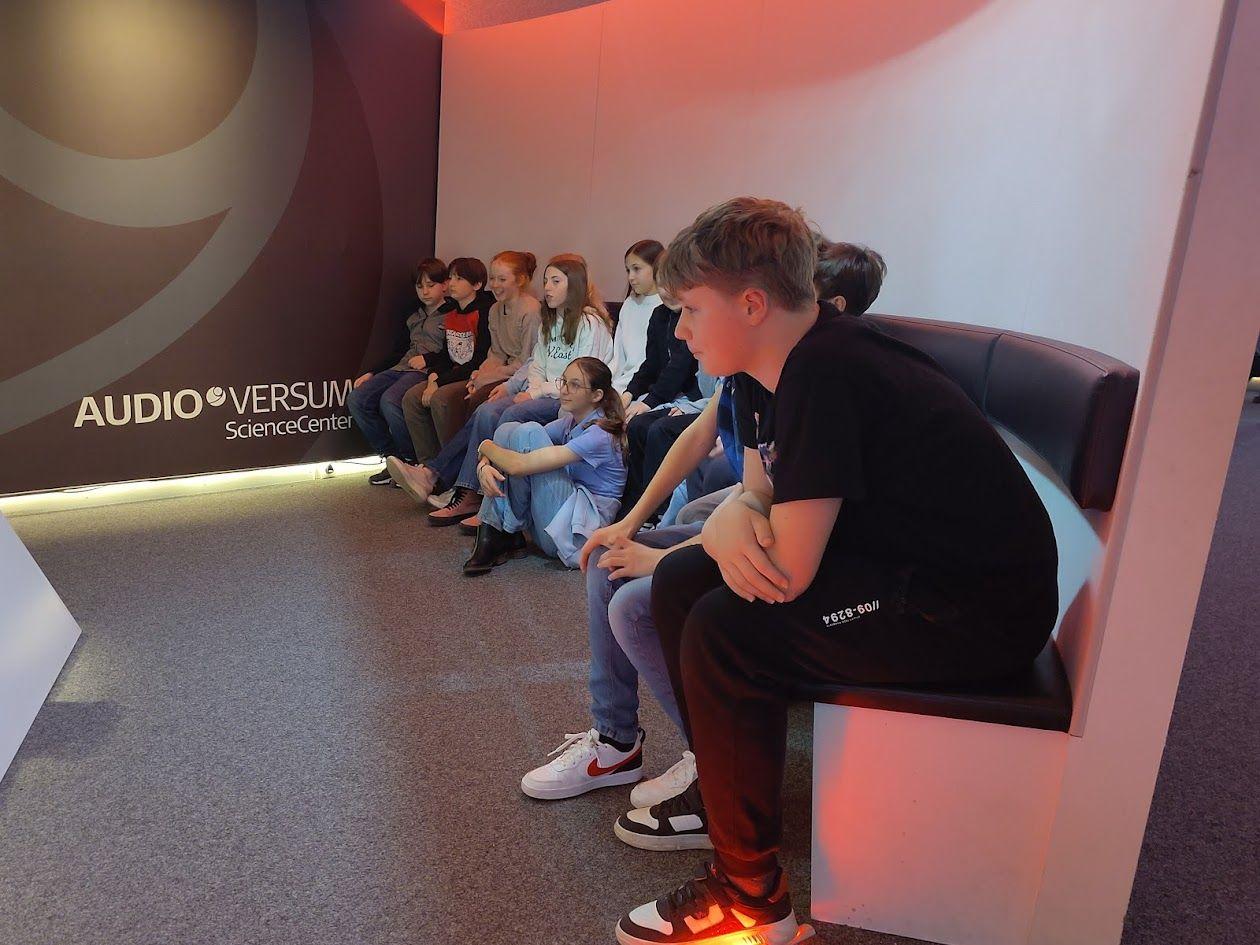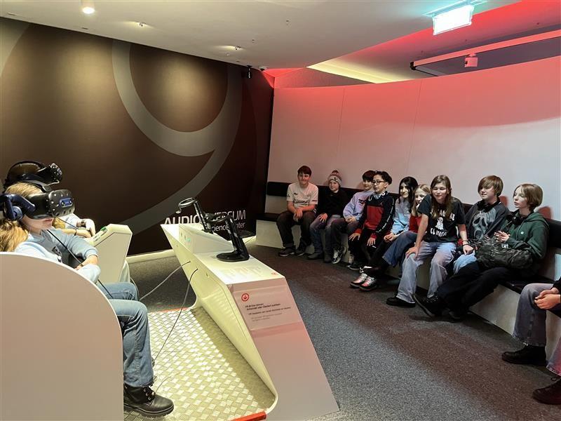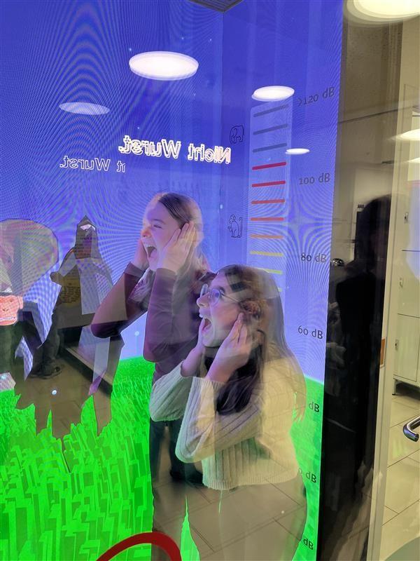 Im Rahmen des Biologie-Labor-Unterrichts besuchten die Klassen 2a und 2c am19.2 und 12.3.2026 das Audioversum in Innsbruck. In zwei Gruppen übten sie sich an verschiedenen „brain-gym“ Stationen, bei denen man sein Gehirn herausfordern und so die Denkleistung verbessern kann. Der eigentliche Grund unseres Besuchs war aber die Dauerausstellung zum Gehör im ersten Stock, bei der es viele Mitmach-Stationen gibt. Die Schüler waren mit Eifer dabei, und so ging es am Schluss bei der virtuellen Achterbahn-Fahrt noch einmal für alle richtig rund.