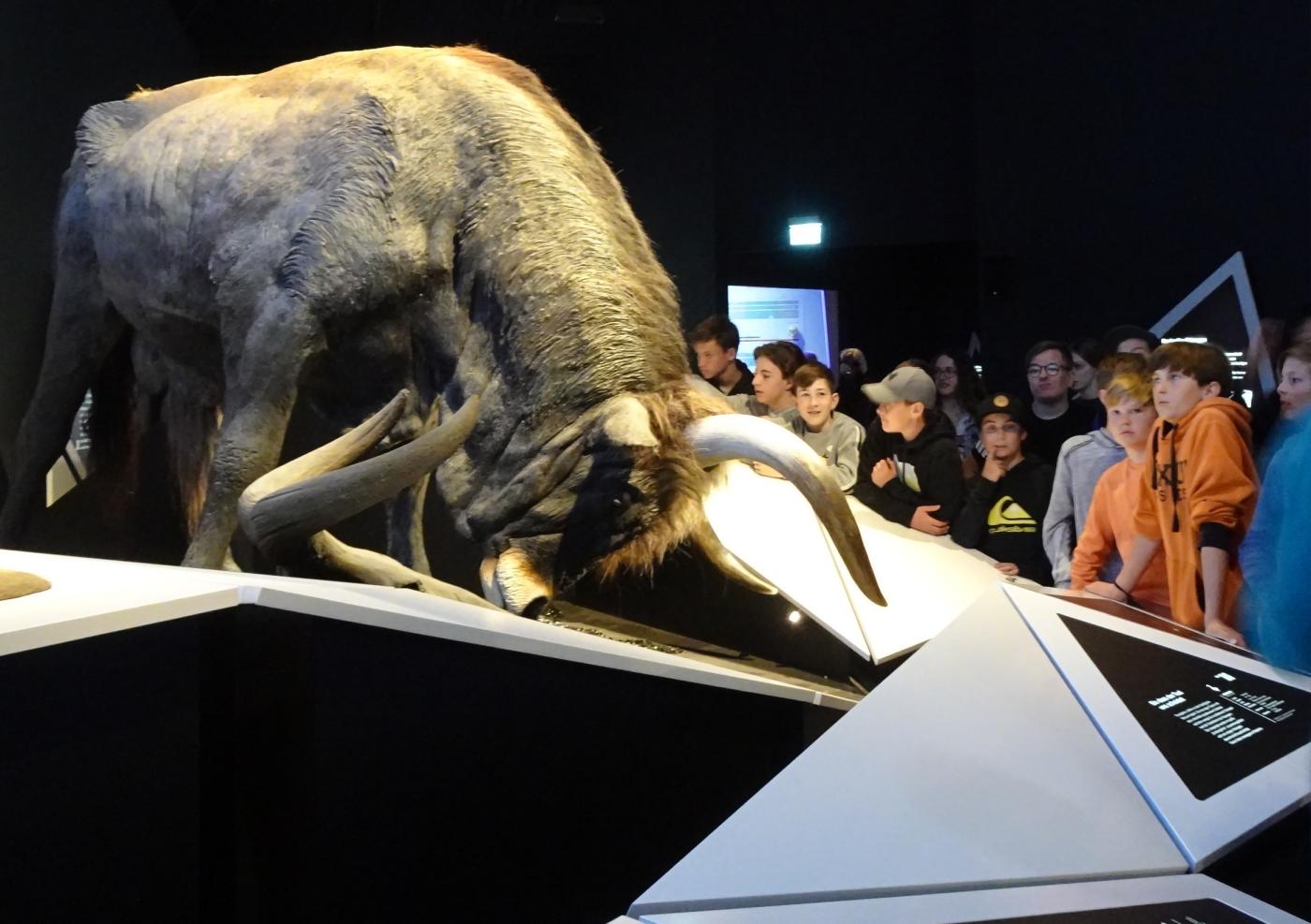 Die aktuelle Ausstellung im Lokschuppen in Rosenheim widmet sich dem Thema "Eiszeit". Die 3B erkundete mit ihrer Klassenvorständin Prof. Gostner und ihrer Biologielehrerin Prof. Demel bei einer sehr informativen Führung das Leben unserer Vorfahren während der Eiszeit. In den vier Abschnitten der Ausstellung werden die Lebensbedingungen und der Alltag der Menschen während der vier Jahreszeiten thematisiert. Lebensgroße Rekonstruktionen von Mammut, Wollnashorn, Höhlenlöwe und vielen weiteren Tieren lassen die Tierwelt der Eiszeit lebendig werden. Das 34.000 Jahre alte Original-Skelett des "Mannes von Neuessing" und die daraus gewonnenen Erkenntnisse haben uns besonders beeindruckt.
