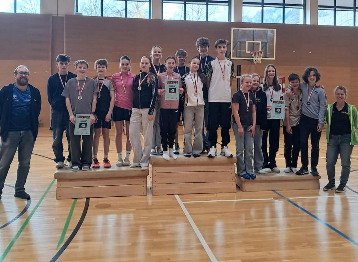 Am 25.03. machten sich 16 Schülerinnen und Schüler in aller Früh auf den Weg nach St. Johann, um dort an den Landesmeisterschaften des Badminton-Schulcups teilzunehmen. In sämtlichen Begegnungen mit anderen Teams aus ganz Tirol ließen unsere Mannschaften nichts anbrennen und konnten schließlich allesamt mit Goldmedaillen geschmückt nach Hause fahren.