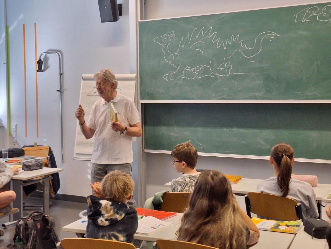 Die Klassen 1b und 1d wurden vom bekannten österreichischen Kinder- und Jugendbuchautor Franz Sales Sklenitzka besucht – und jede Klasse bekam ihre eigene individuelle Lesung. Doch „Lesung“ kann man es eigentlich nicht nennen, denn der Schriftsteller und Illustrator las nicht nur aus seinen Büchern vor, sondern fabulierte, malte und band die SchülerInnen auch mit ein. Diese lauschten Sklenitzka dann auch fasziniert, der mit seiner ruhigen und trotzdem unterhaltsamen Art begeistern konnte, und die Bücher wurden sogleich in der Bibliothek angefordert.