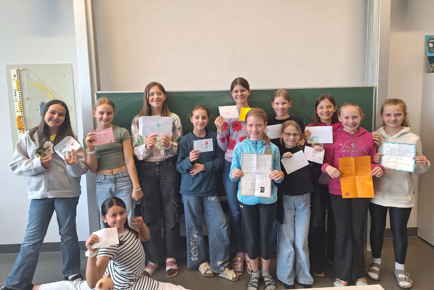 Da im Deutschunterricht der 1. Klassen die Textsorte „Brief“ bearbeitet wird, entstand die Idee, die Theorie mittels Briefpartnerschaft auch gleich in die Praxis umzusetzen. An dieser Stelle herzlichen Dank an Andreas Erlacher und David Astl vom Paulinum, die sich bereit erklärten, mit ihren Deutschklassen einen Briefwechsel mit den Klassen 1b und 1d zu starten. Die Briefe wurden jedes Mal sehnsüchtig erwartet und ihre Ankunft mit großem Jubel begrüßt. Fleißig wurde hin- und hergeschrieben und neben dem Übungseffekt entstanden neue Kontakte, von denen so manche wohl noch weiterbestehen werden.