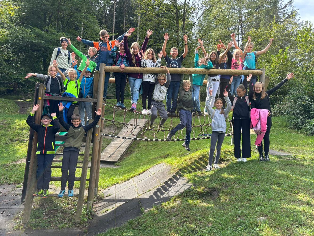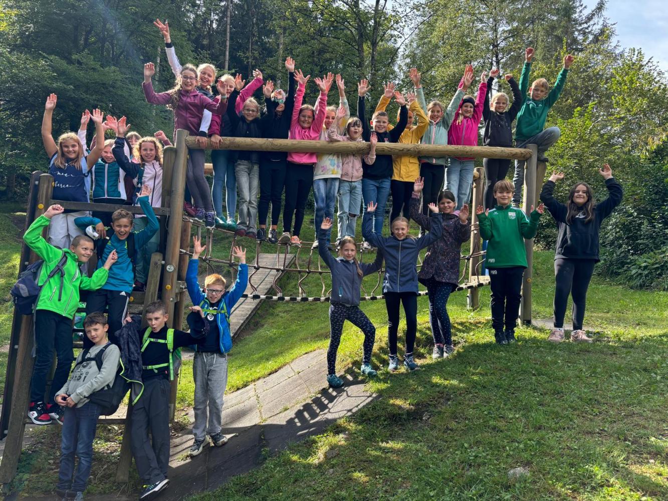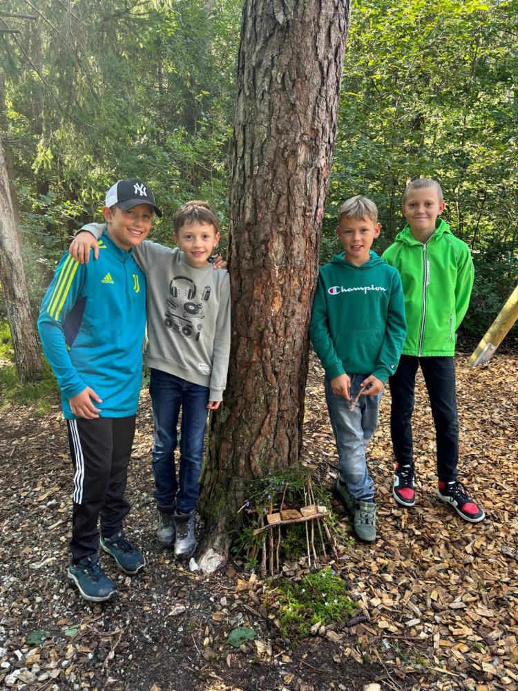 Die erste Schulwoche stand unter dem Zeichen Kennenlernen. Dabei wurden unter anderem Kennenlernspiele gespielt, Steckbriefe ausgefüllt, Geburtstagskalender gebastelt, Waldbilder gelegt, gewandert, auf dem Waldspielplatz getobt, viele Fragen beantwortet und die Schule erkundet.