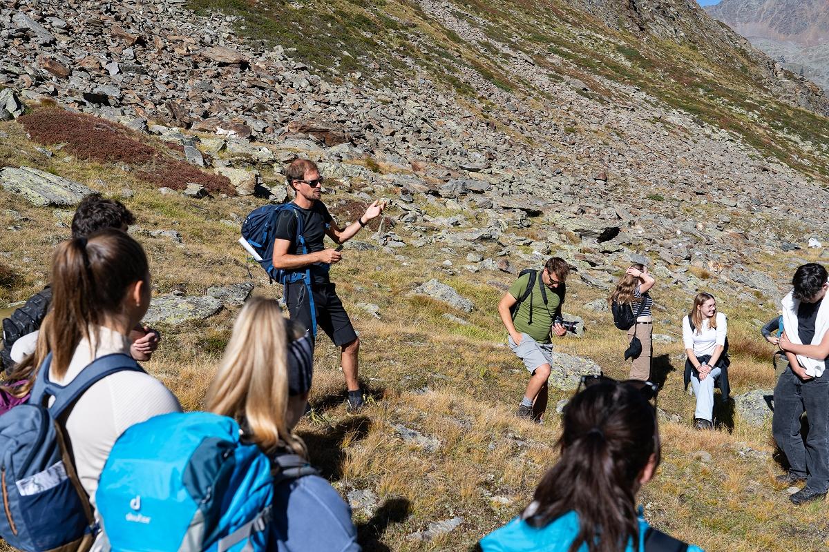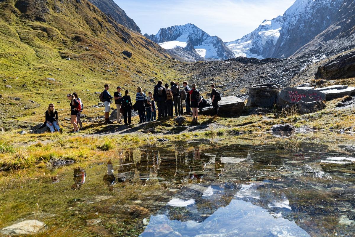 Die Belgier und Österreicher reisten gemeinsam nach Längenfeld und Obergurgl im Ötztal, um dort den Einfluss der Landschaftsveränderung durch Tourismus und Klimawandel zu studieren. Wieder mit dabei war das Institut für Meteorologie der Universität Innsbruck mit Dr. Wolfgang Gurgiser und Lillian Schuster, die Expertise und professionelle Messausstattung beisteuerten.