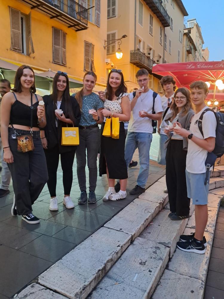 Am Montagmorgen besuchten wir das erste Mal unsere Sprachschule, in der wir auch an den folgenden drei Tagen Unterricht hatten. Am Nachmittag erkundeten wir bei einer Führung die Stadt Nizza, deren Highlights die Promenade und der Wasserfall waren. Danach erwartete uns, sowie an jedem Abend, ein abwechslungsreiches Programm.