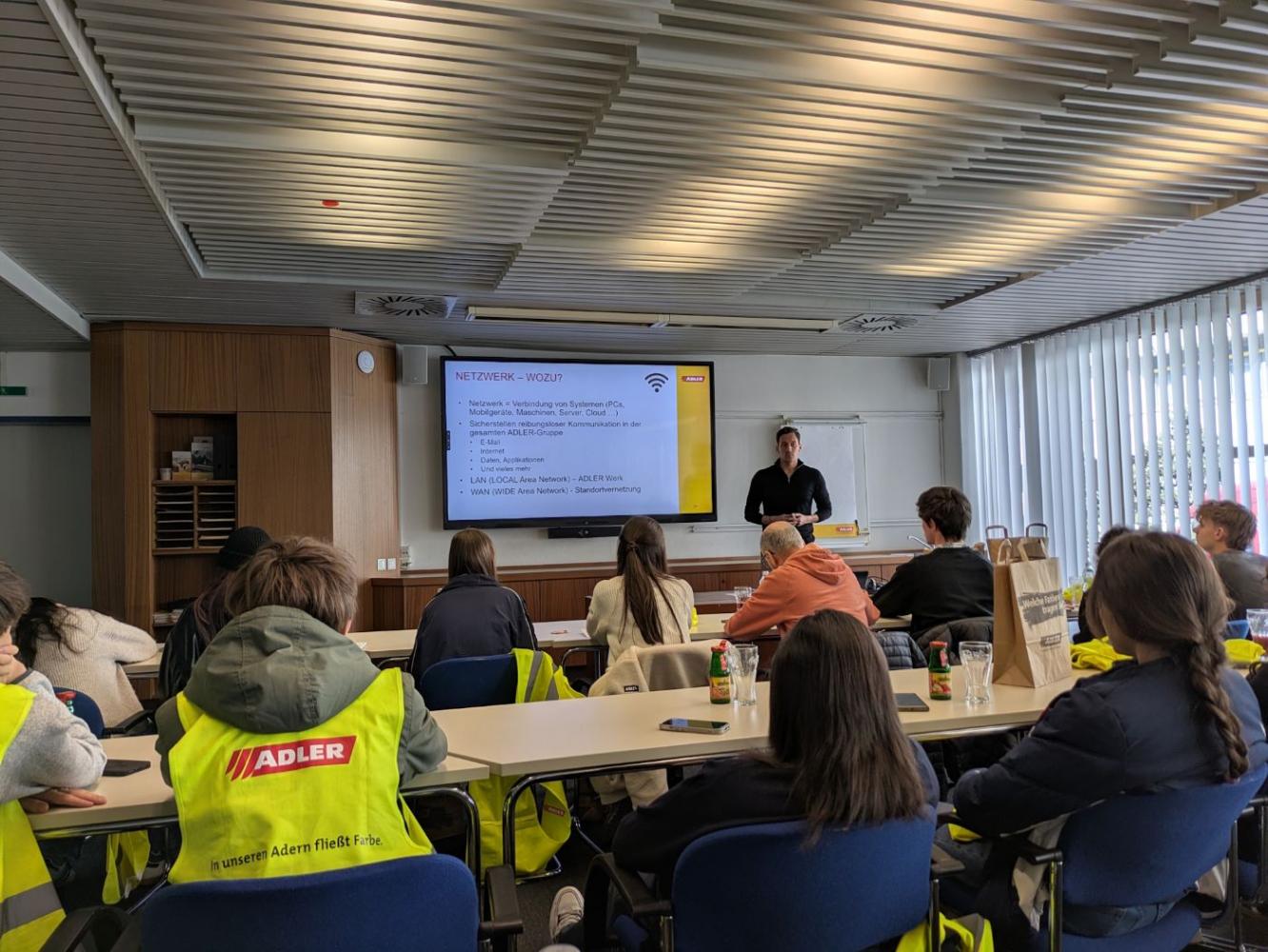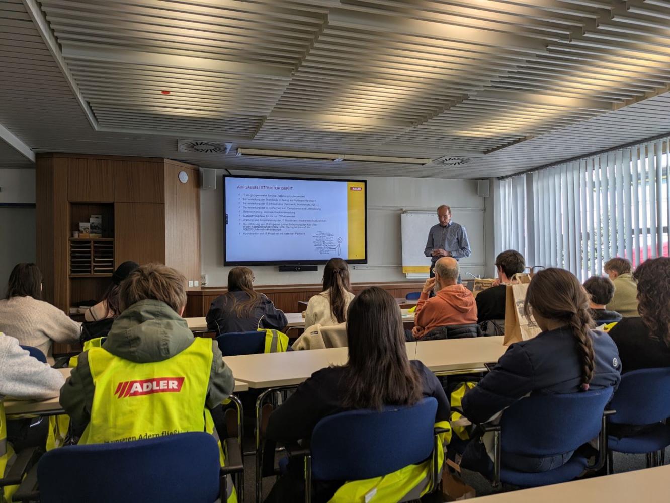 Im Rahmen der Informatikwoche war die 6B zu Gast im ADLER-Werk in Schwaz. Nach einer spannenden Betriebsführung durch das gesamte Werk versammelten wir uns im Seminarraum, wo uns der Leiter der IT-Abteilung einen tiefen Einblick in die vielfältigen Aufgabenbereiche seines Teams gewährte.
