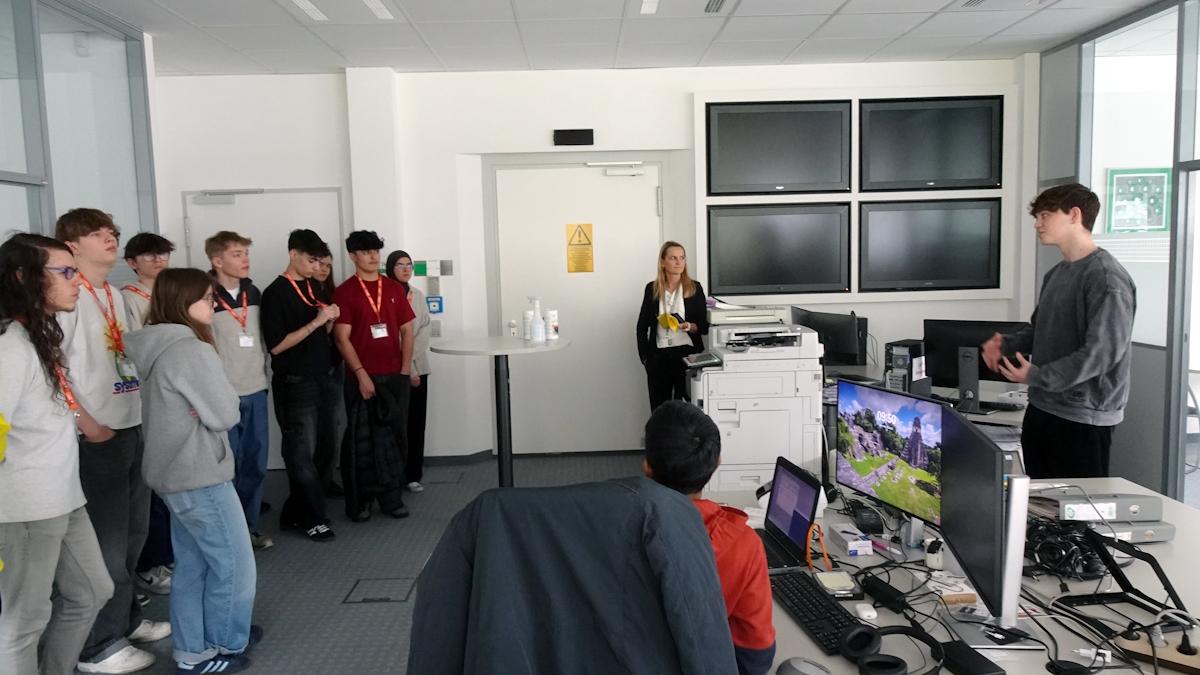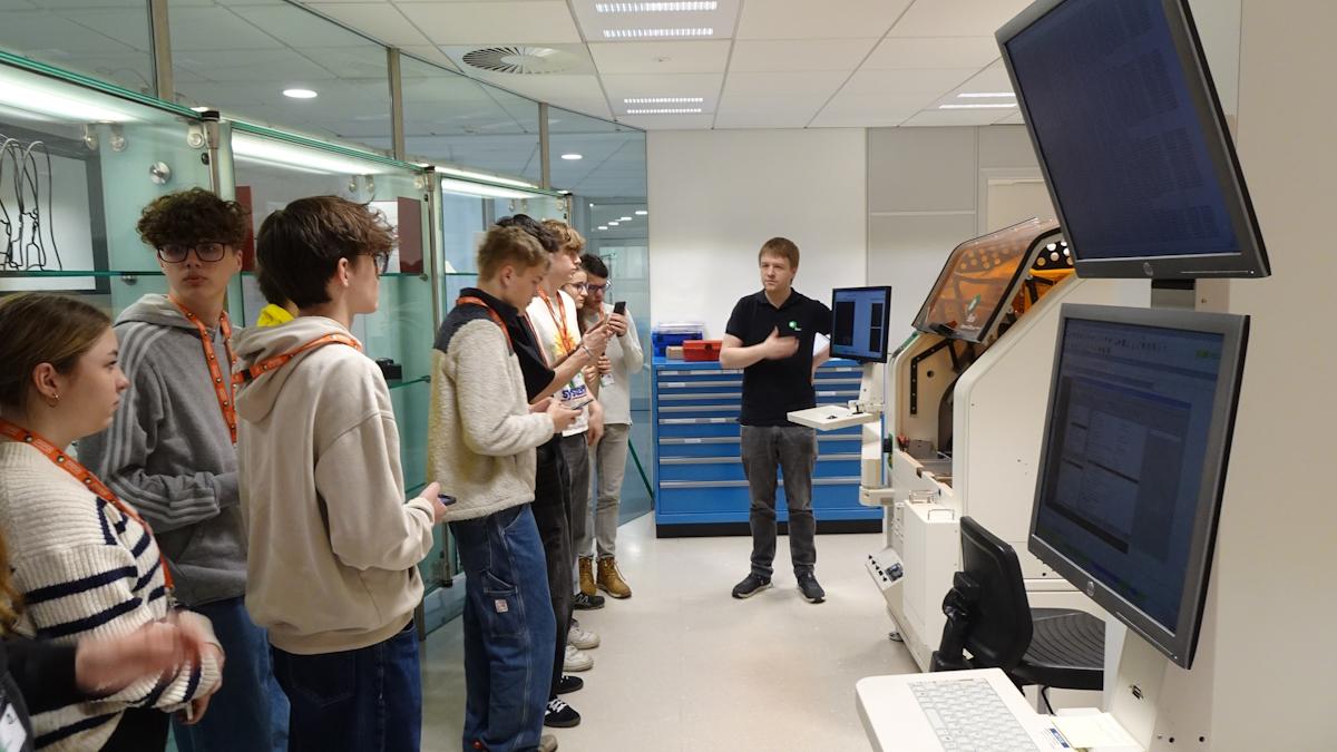 In zwei Gruppen wurden wir dann durch das Gebäude geführt und konnten das Rechenzentrum, den Serverraum, den Reinraum und die Software-Abteilung besichtigen. Von besonderem Interesse war die Maschinenvorführung.