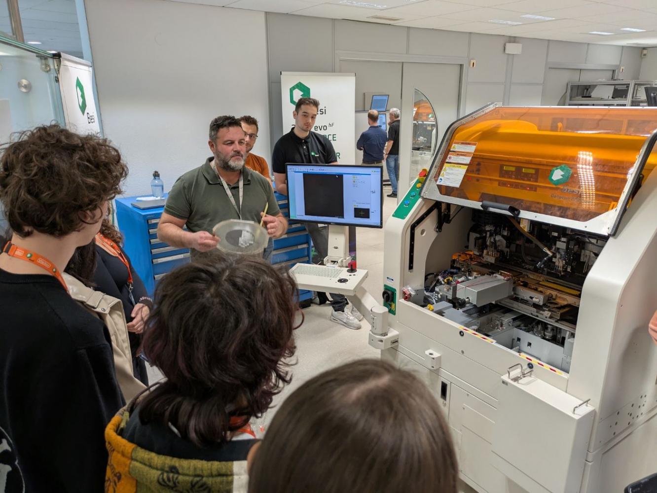 Im Rahmen der Informatikwoche besuchte die Informatikgruppe der 6B am 24.03.2026 Besi Austria in Radfeld. Nach einer herzlichen Begrüßung wurden wir durch das Gebäude geführt. Dabei konnten wir unter anderem das Rechenzentrum, den Serverraum, den Reinraum und die Software-Abteilung besichtigen. Besonders beeindruckend war die Vorführung einer Besi-Bestückungsmaschine. In Radfeld werden die Prototypen dieser Maschinen entwickelt, die von rund 50 Programmiererinnen und Programmierern mit Software ausgestattet werden. Den Abschluss bildete ein Vortrag in dem uns die Abteilung „Research & Development Software“ im Detail vorgestellt wurde. Wir bedanken uns für die freundliche Aufnahme, für die Organisation und nicht zuletzt für die gute Jause.