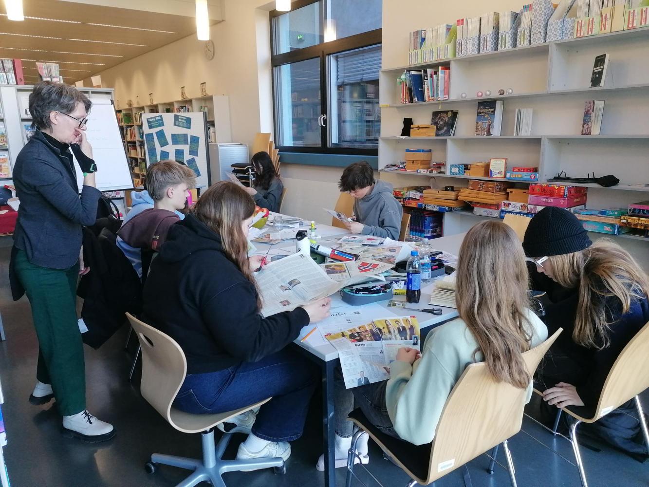 Die Schüler*innen des Wahlpflichtfaches Creative Writing tauchten in die Welt der Lyrik ein – von Haiku und Cut-up-Techniken bis zum Rondell. Mit Schere, Kleber & alten Zeitschriften entstanden kreative Texte voller Überraschungen.
