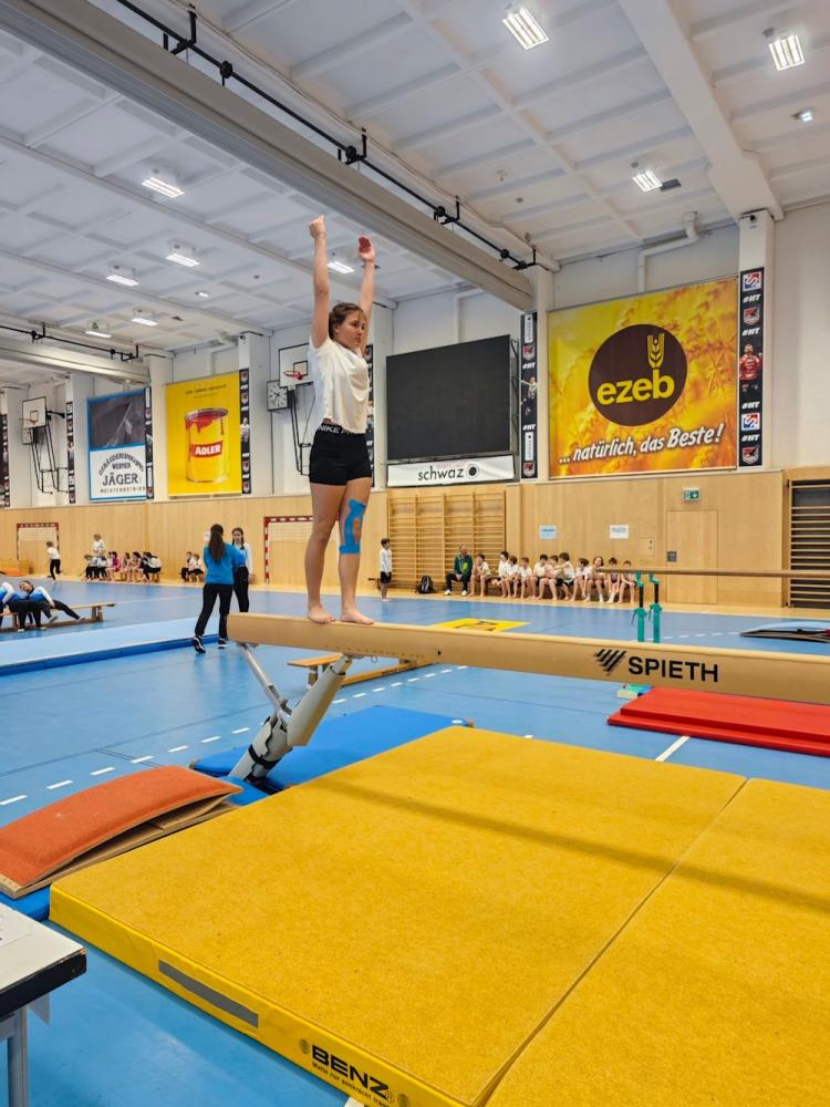 Am 6.3. fand der diesjährige, bestens organisierte Turn 10 Wettbewerb in der Schwazer Osthalle statt. Beinahe 50 Mannschaften aus unterschiedlichen Tiroler Schulen zeigten ihr turnerisches Können auf den Geräten Boden, Balken, Sprung und Reck und verfolgten das Ziel, Landesmeister*innen zu werden. Auch 3 Mädchenmannschaften unserer Schule stellten ihr herausragendes Können unter Beweis. Die Mannschaft der 2. Klassen erreichte den hervorragenden 12. Platz und die Mädchen der 3. Klassen verpassten das Podest als 4. nur ganz knapp. Unsere Mannschaft der 1. Klassen (Viktoria, Livia, Ilvi, Lanea, Pia und Sophia) stellte ganz Tirol in den Schatten und erturnte sich mit sensationellen Leistungen den Landesmeistertitel.