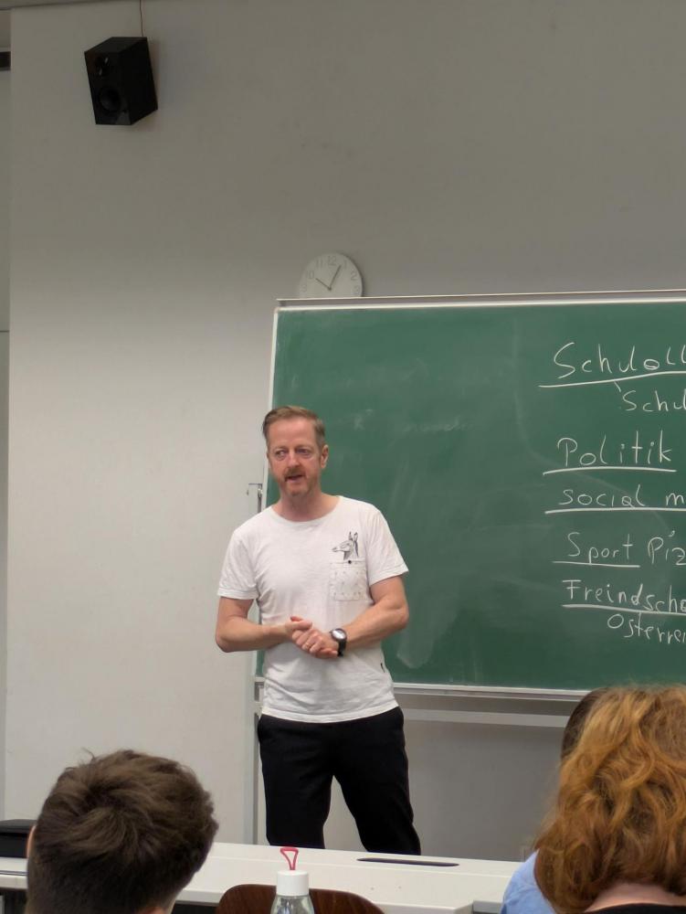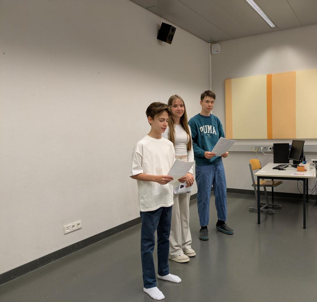 Die Klasse 6r und das Wahlpflichtfach Creative Writing tauchten im Rahmen eines Workshops in die Welt des Poetry Slam ein. Unter der Anleitung des Tiroler Künstlers, Markus Koschuh, zweifacher österreichischer Poetry-Slam-Meister und Kabarettist, erhielten die Schüler*innen wertvolle Tipps zum Schreiben und Präsentieren eigener Texte. Mit Witz und Fachwissen motivierte Markus Koschuh die Schüler*innen eigene Texte zu verfassen – einige wurden sogar live performt!