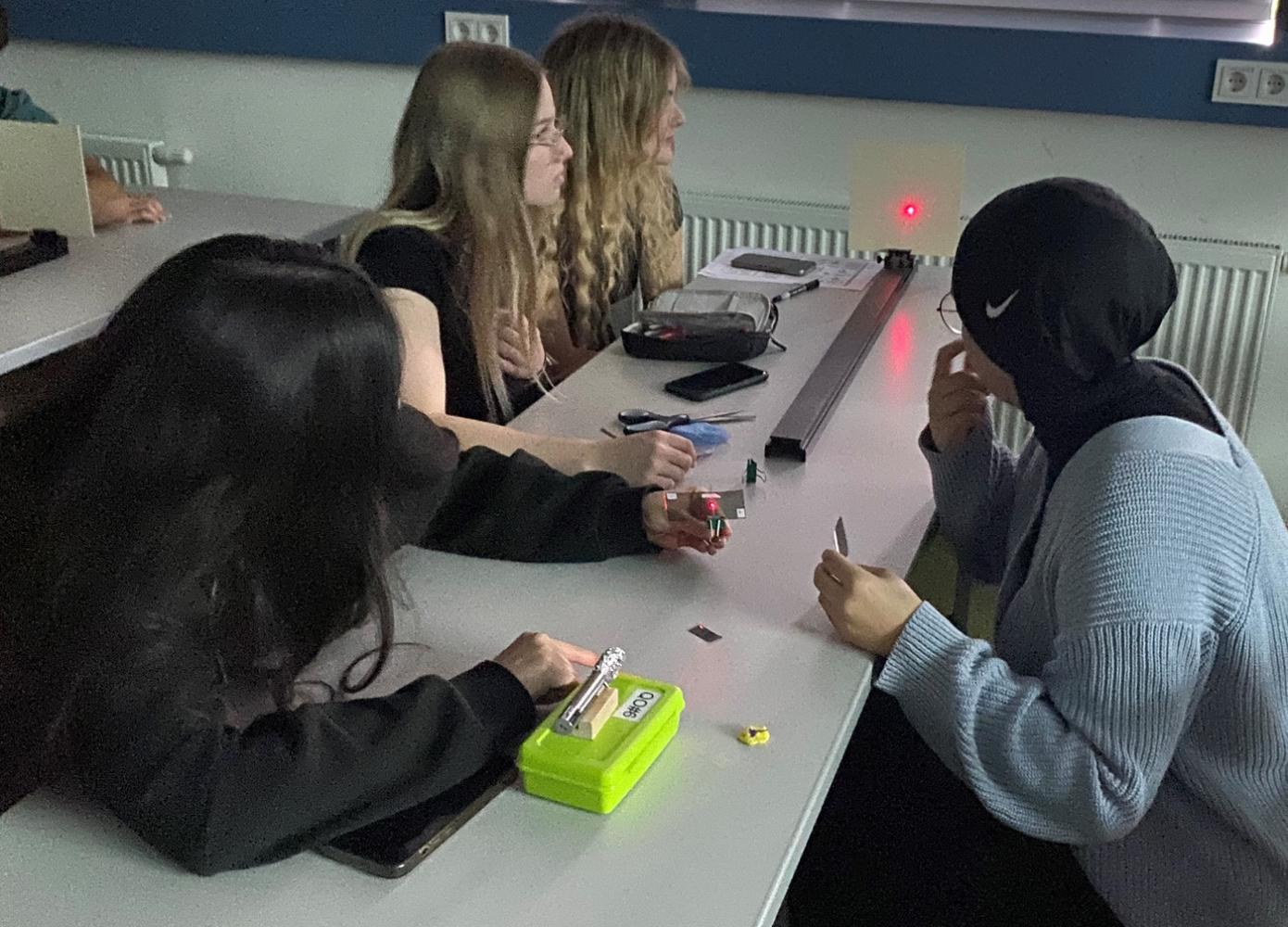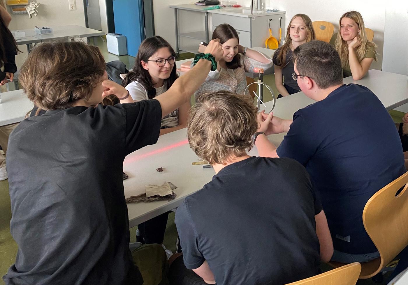 Am Montag der letzten Schulwoche konnten die 7.Klassen der Zweige Naturwissenschaften und Informatik ihr Wissen über die Quantenwelt vertiefen. Um in die paradoxe Quantenwelt einzutauchen, wurde zuerst in Kleingruppen ein Quantenradierer realisiert. „Hirnschmalz und Fingerspitzengefühl“ waren notwendig, um dieses Experiment zum Laufen zu bringen. Die Schüler*innen konnten dann zwischen Welle- und Teilchenbild hin- und herschalten.