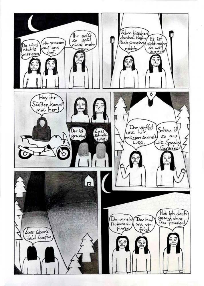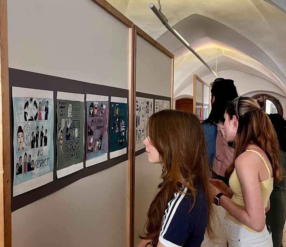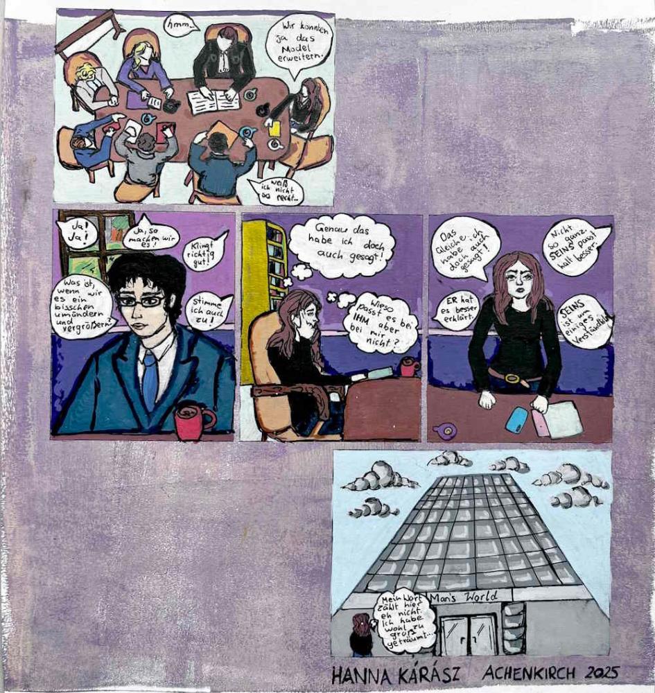 Im Workshop sowie im anschließenden Kunstunterricht setzten sich die Schüler*innen intensiv mit Themen wie Feminismus, Storytelling und persönlichen Erfahrungen auseinander. Das Ergebnis: ausdrucksstarke, kreative Comics, die gesellschaftlich relevante Fragen stellen – mal ernst, mal humorvoll, immer mit Haltung.