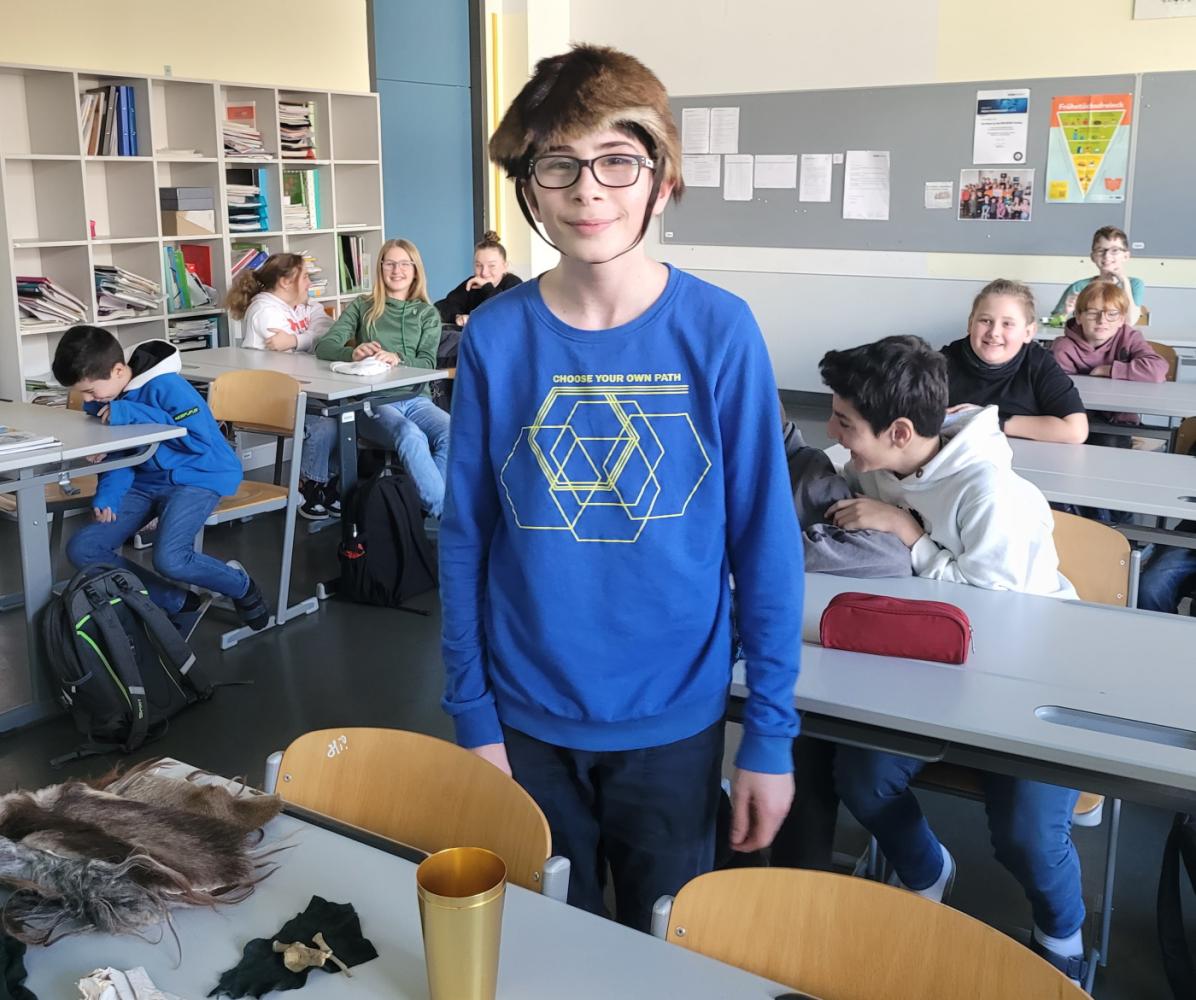Mag. Elisabeth Rastbichler, Archäologin und Gründungsmitglied der „Jungen Uni“ Innsbruck, besuchte im Rahmen des Geschichtsunterrichts die 2a Klasse und schilderte den interessierten Schüler:innen neueste Forschungsergebnisse im Zusammenhang mit der Gletschermumie Ötzi. Die mitgebrachten, rekonstruierten Kleidungsstücke, die den Ötzi Fund so einzigartig machen, bereiteten den Schüler:innen sichtlich Freude.