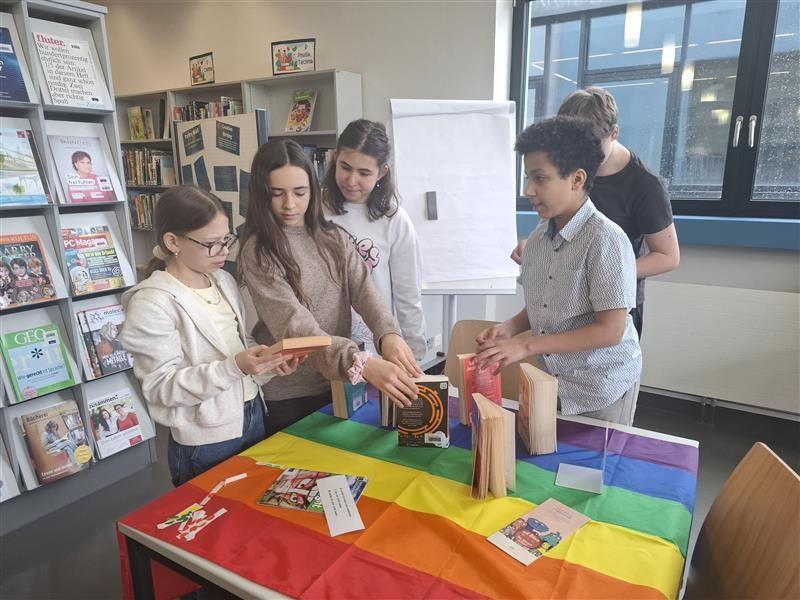 Bücher-Speed-Dating in der Schulbibliothek: Schüler*innen entdecken Bücher, lesen sich gegenseitig vor, tauschen Eindrücke aus und wählen ihre Favoriten.