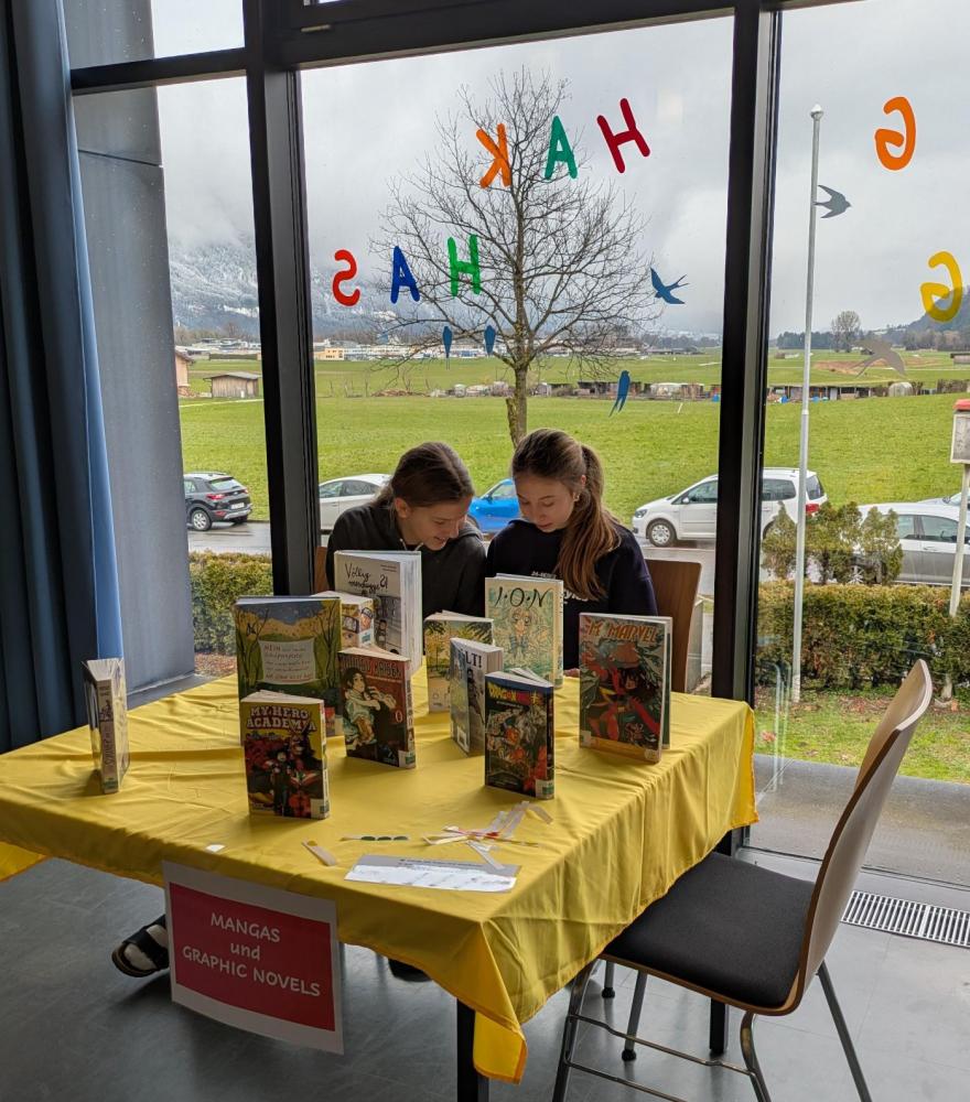 Wie jedes Jahr gab es auch heuer am Österreichischen Vorlesetag (26.03) zahlreiche Aktionen rund ums Lesen am BRG/BORG Schwaz. Beispielsweise besuchten einige Schulklassen die Schulbibliothek und nahmen am Bücher-Speed-Dating teil, bei dem sie in kurzer Zeit viele verschiedene Bücher kennenlernen und ihre Eindrücke dazu austauschen konnten.