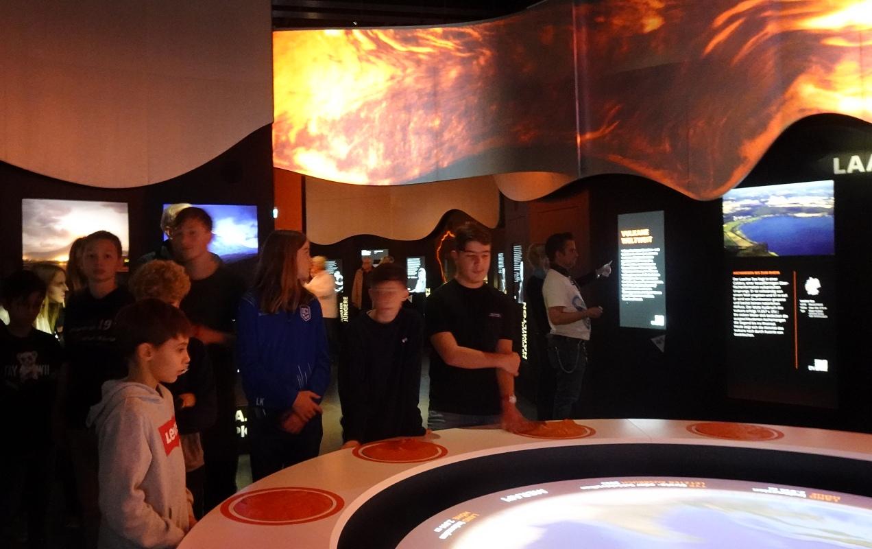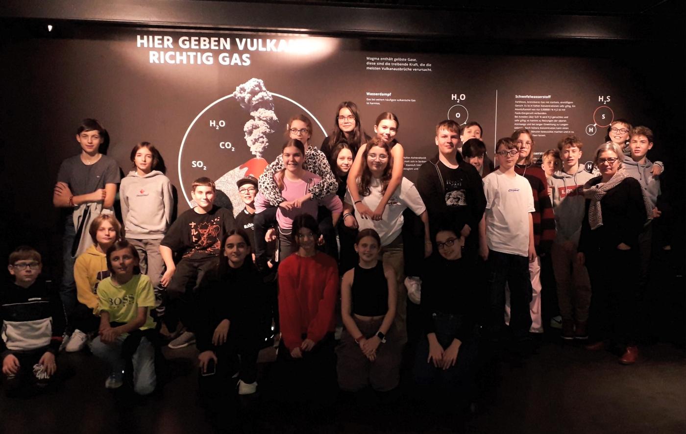 Am 9. 11. besuchten die beiden Klassen 3B und 3D die Ausstellung "Vulkane" im Lokschuppen in Rosenheim. Im Zuge einer interessanten Führung lernten die Schülerinnen und Schüler unterschiedliche Vulkantypen kennen und erfuhren Vieles zum Thema Plattentektonik. Ein virtueller Vulkanausbruch konnte live miterlebt werden. Erstaunlich war, dass es Vulkangestein gibt, das schwimmen kann! Zum Schluss testeten manche ihr Wissen noch in einem Quiz.