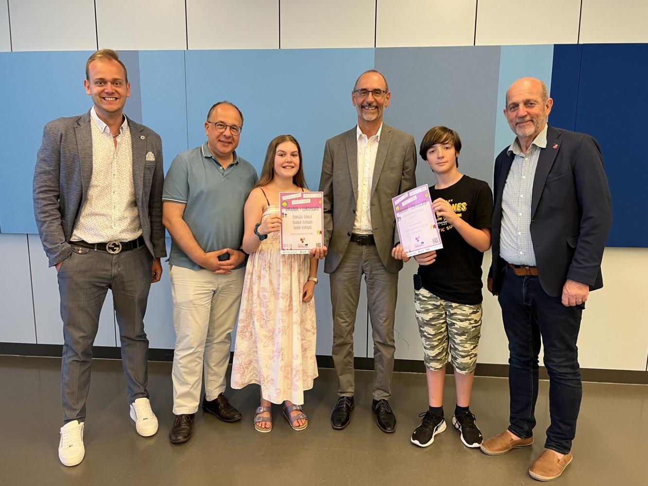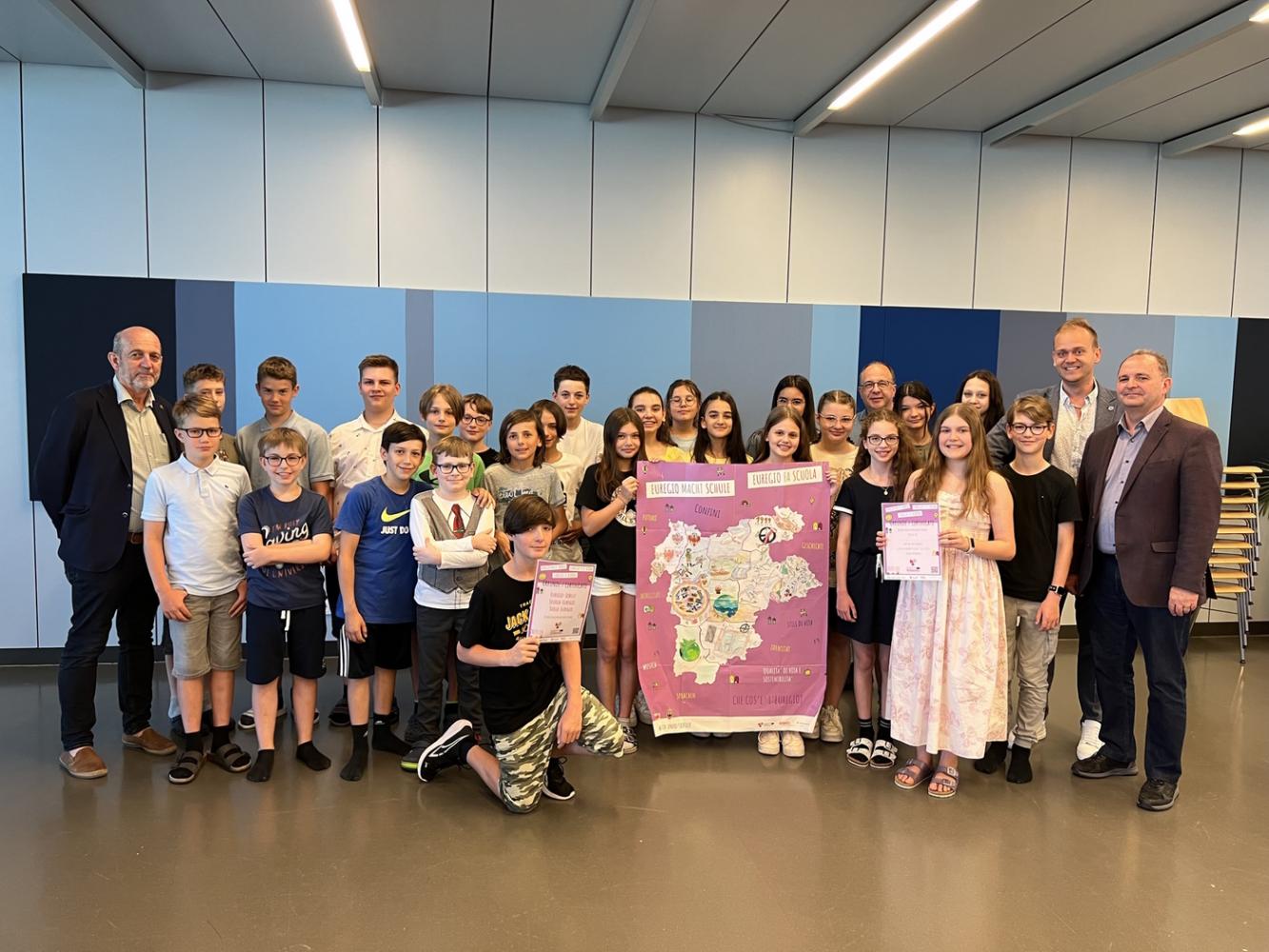 Am Montag, den 26.06.2023, wurde die 2b-Klasse gemeinsam mit Prof. Lintner für die intensive Auseinandersetzung mit der Europaregion Tirol-Südtirol-Trentino im Unterricht von Fritz Tiefenthaler (Euregio) sowie Thomas Neuwirth (Bildungsdirektion Tirol) ausgezeichnet. Das Realgymnasium Schwaz darf sich daher für das kommende Schuljahr als EUREGIO-Schule bezeichnen.