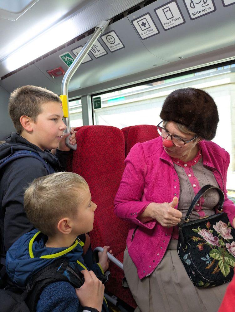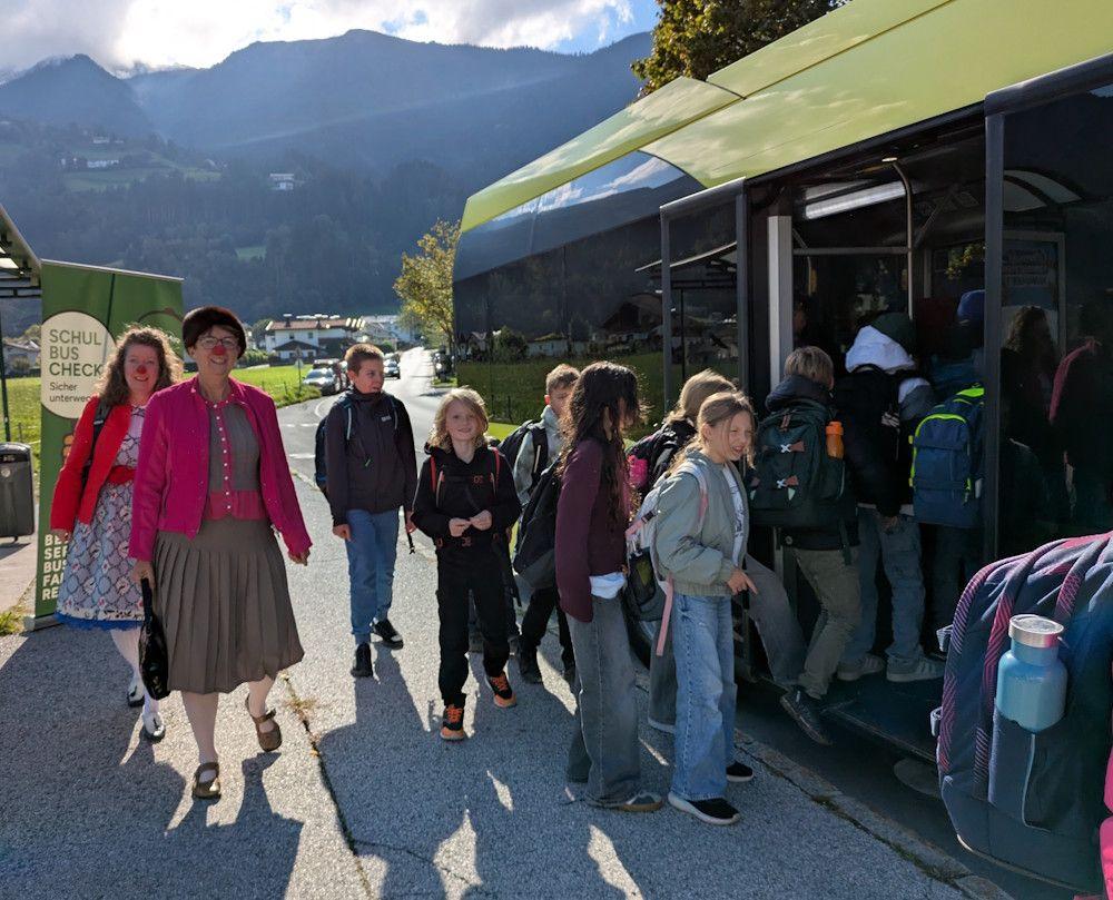 Am 2. Oktober fand ein Workshop der Firma Ledermaier zum Thema "Sicheres Busfahren" statt. Die Schülerinnen und Schüler der ersten Klassen wurden von der Stadtpolizei und Herrn Alscher an das richtige Verhalten beim Überqueren der Straße und beim Warten auf den Bus erinnert. Zwei Clowns lockerten die Erklärungen auf.