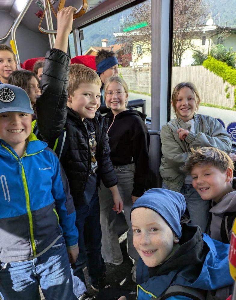 Bei einer Runde mit dem Bus rund um die Schule erfuhren die Kinder, wie man sich im Bus verhält, wo man die Schultaschen am besten verstaut und was alles im Bus nicht erlaubt ist.
